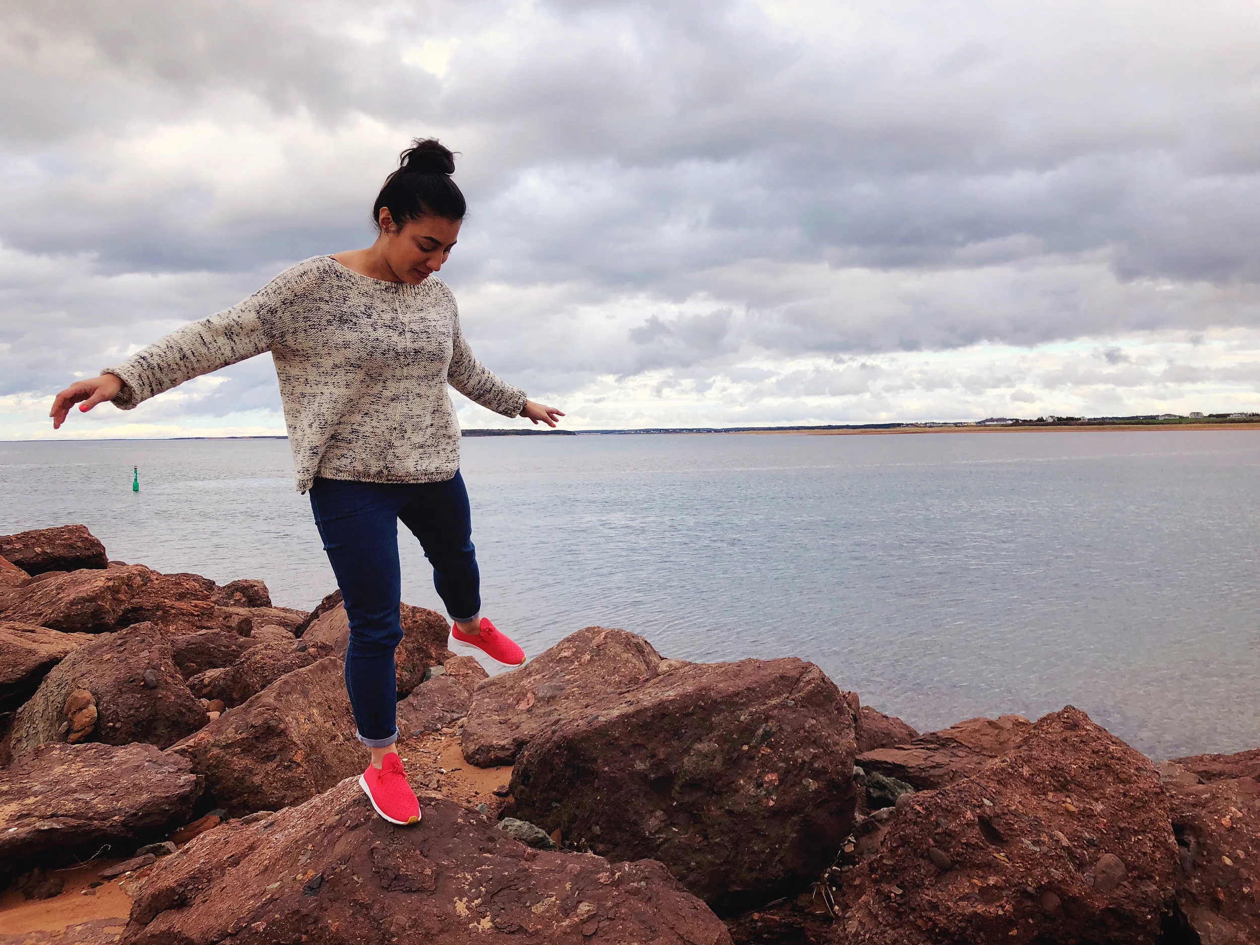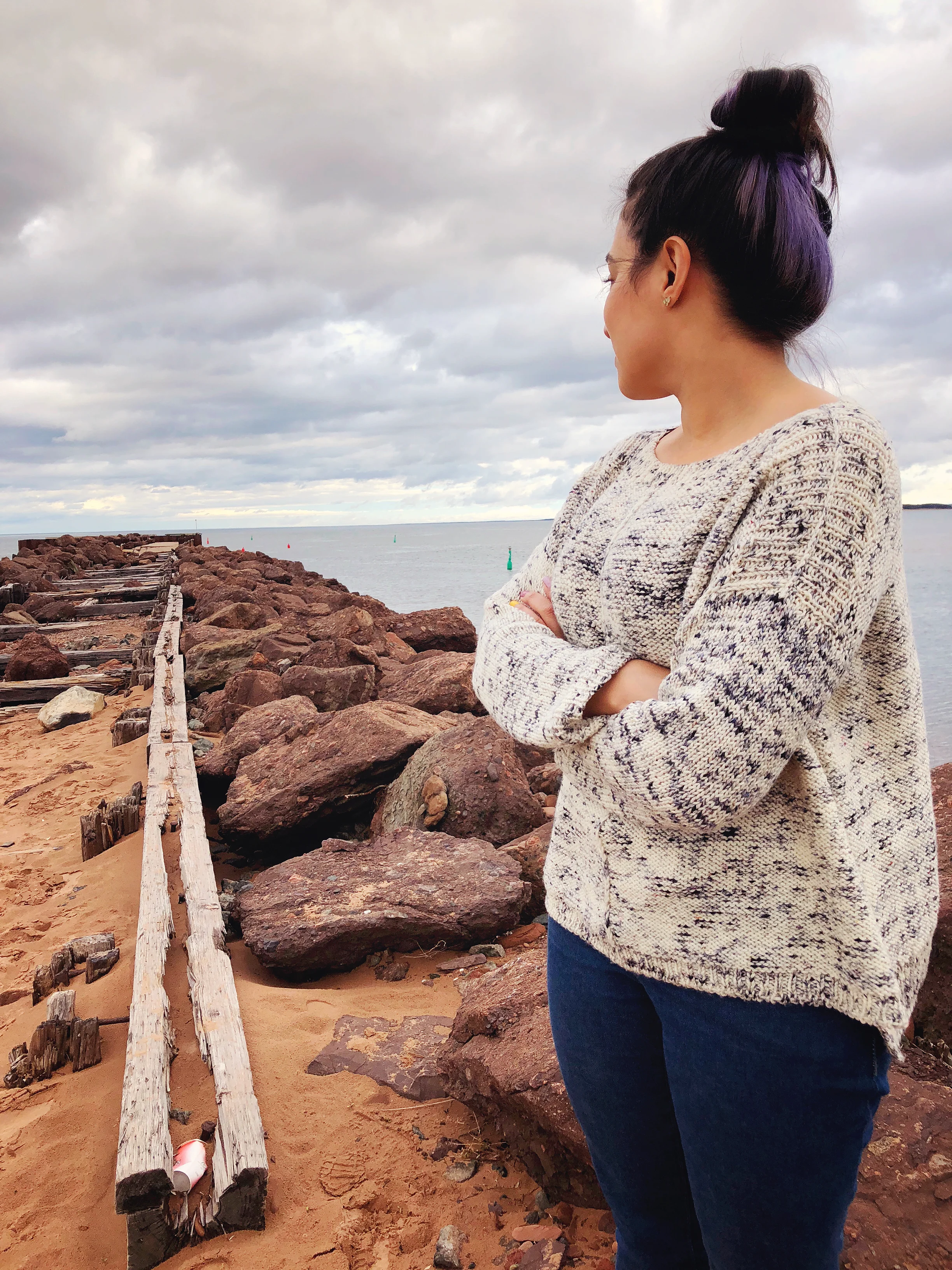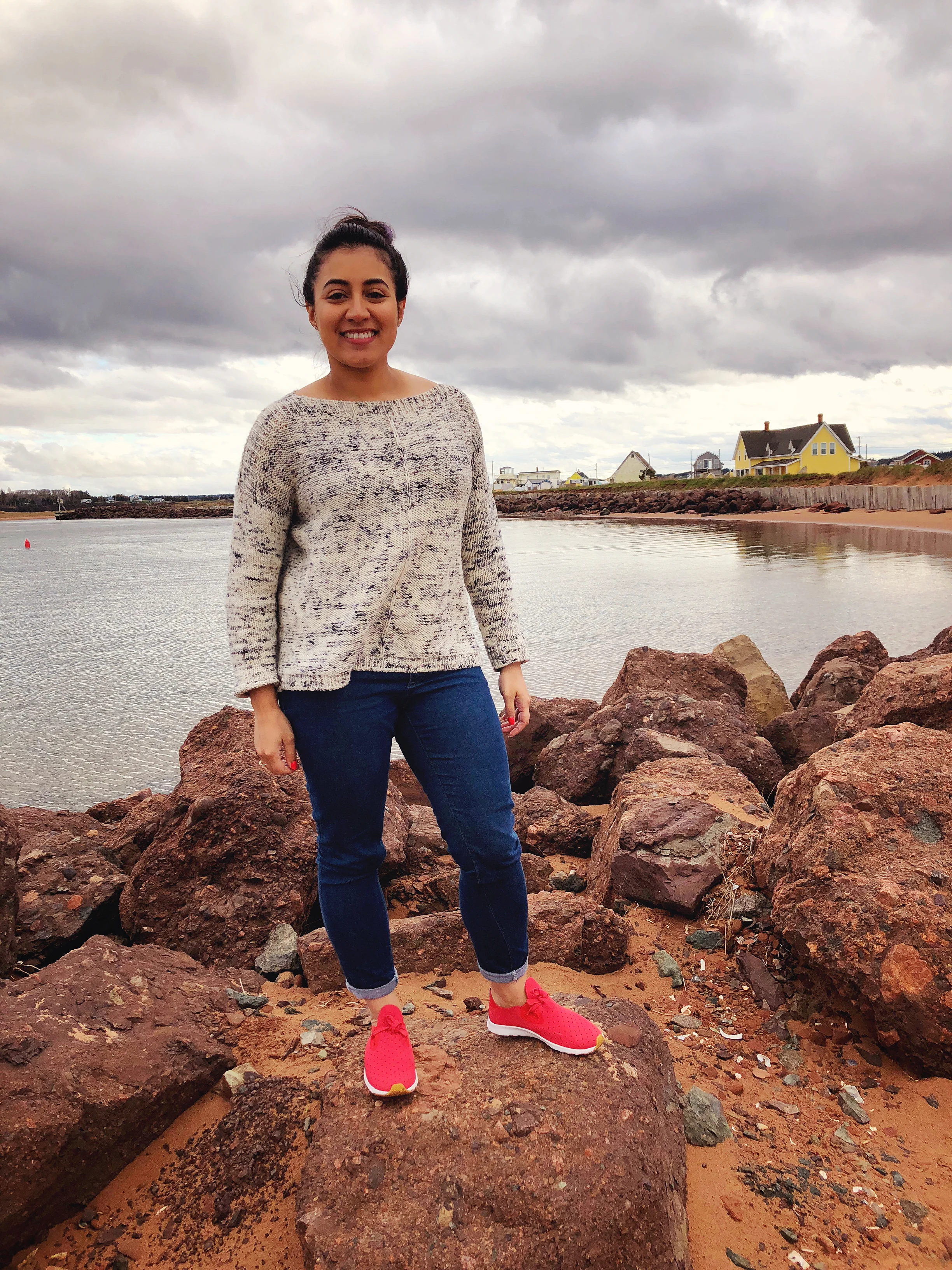 Following on the heels of yet another amazing knit city here in Vancouver, today I’m sharing a knitting project that has been sitting in my closet since the spring! It’s my Weekender Sweater by Andrea Mowry that I whipped up this past March. You may have seen some peeks of it during #MeMadeMay of this year when I wore it during our trip to PEI (the pictures here are actually from that trip! look at that stunning red dirt!) Now that the weather has started to get cool it’s back in heavy rotation in my wardrobe!