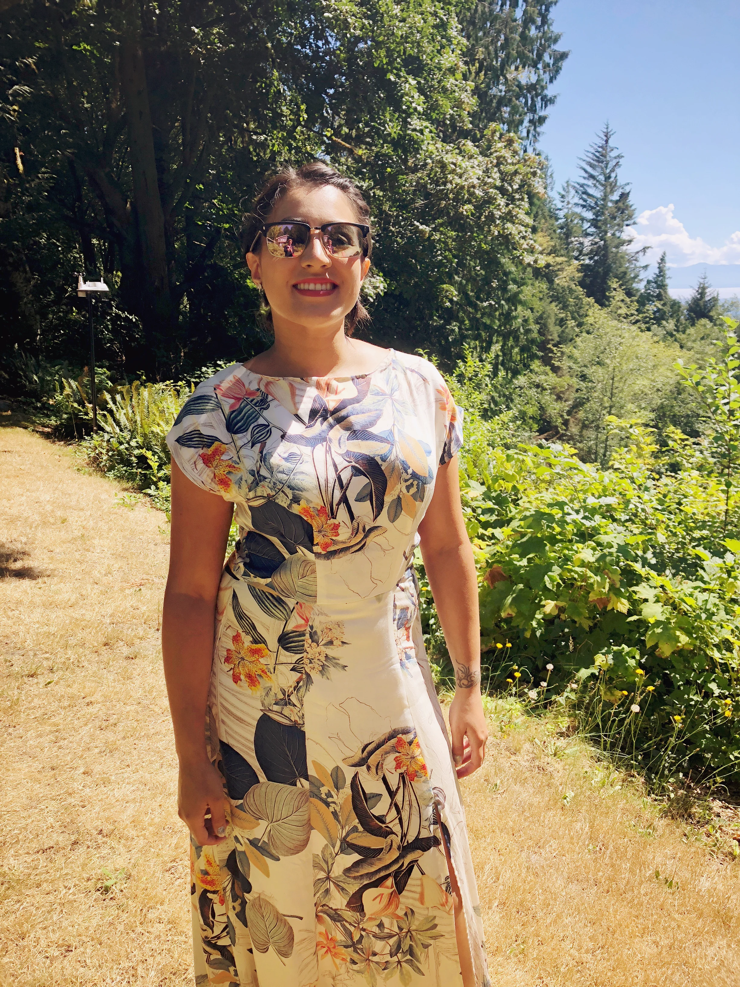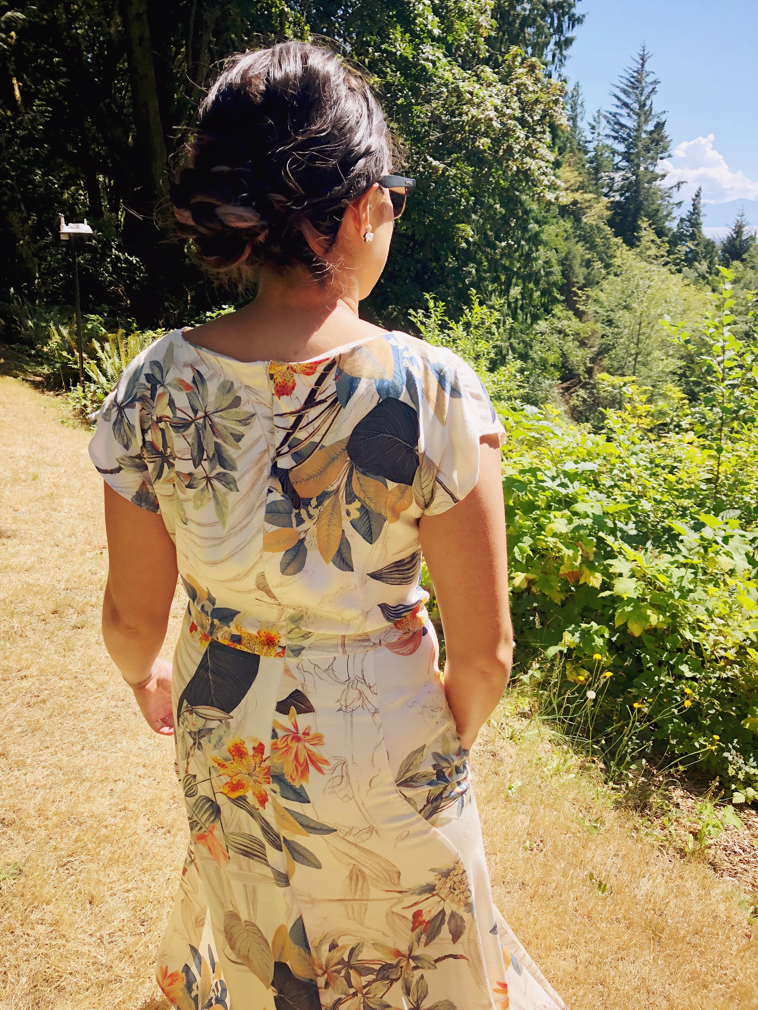 Due to the alterations I had to make post insertions of the facing and zipper the facing of the bodice did have a habit of rolling out a bit, it wasn’t a huge deal but it was kind of annoying to have to constantly tuck it back under. Again I hope that future iterations of this dress with additional fitting tweaks will fix this. Regardless of these issues I really like this dress! It was fun to wear during the wedding and to dance in afterwards :) The fabric was perfect! I believe it is a viscose blend so it did really well in the heat and kept me fairl cool despite the close to 30C weather.