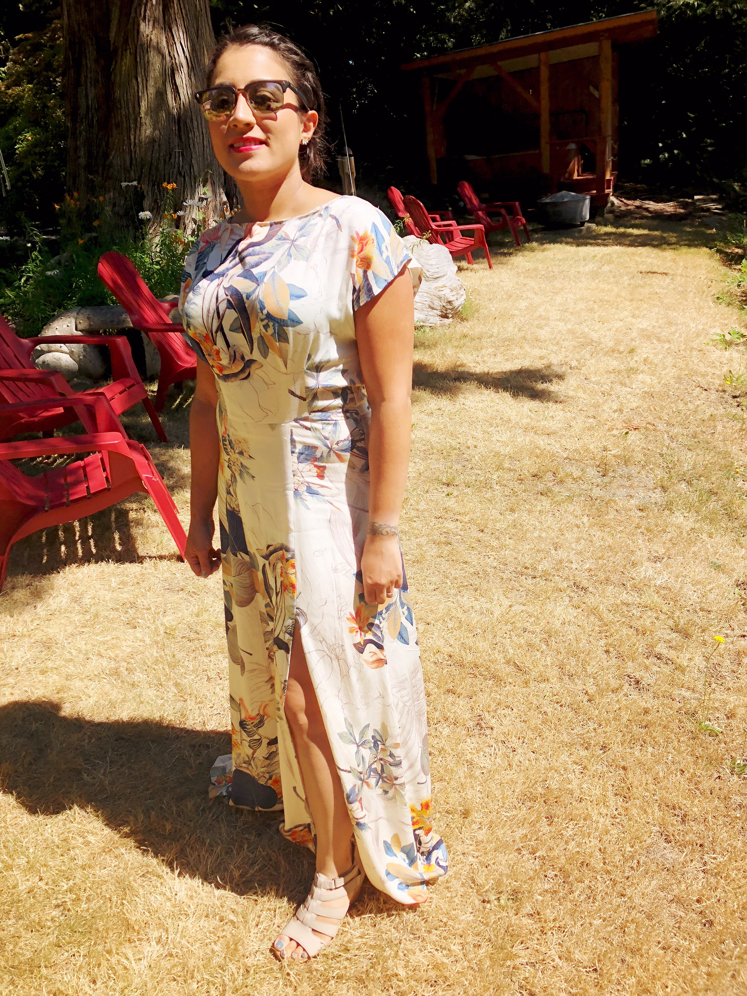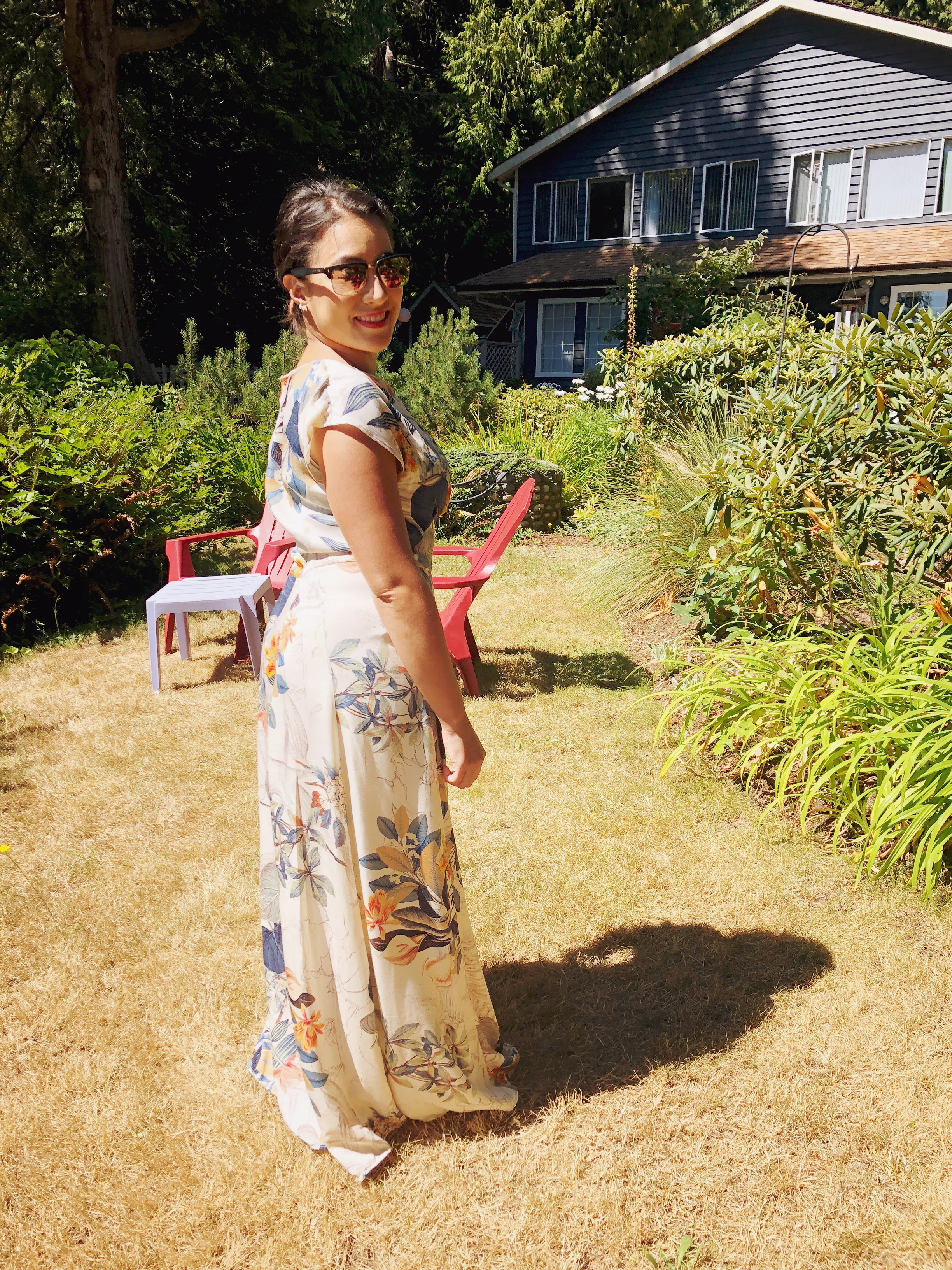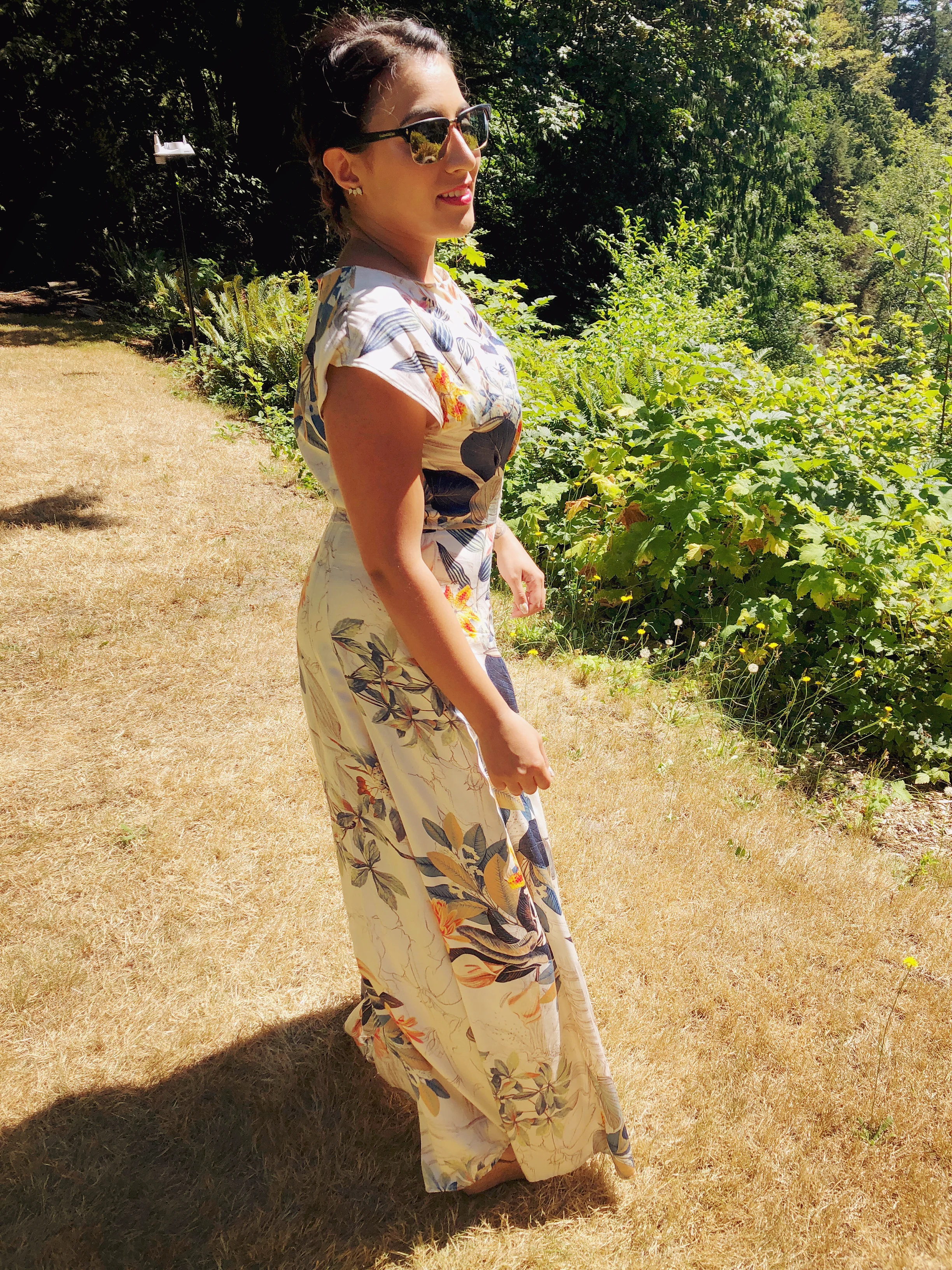 Well that opportunity finally came when I wanted to make a floral wedding guest dress! I’ve recently begun to have a love for maxi length dresses (as you can clearly see by my last post about my Charlie caftan!) and now that I know that I can not only make them in the right length but also save a ton on fabric I now realize what all the hype is about! They are so much fun to ‘swish’ around in and they still manage to keep you pretty cool and comfy in the heat. Plus I feel like they make me feel a smidge taller? Maybe that’s just wishful thinking......but anyway!