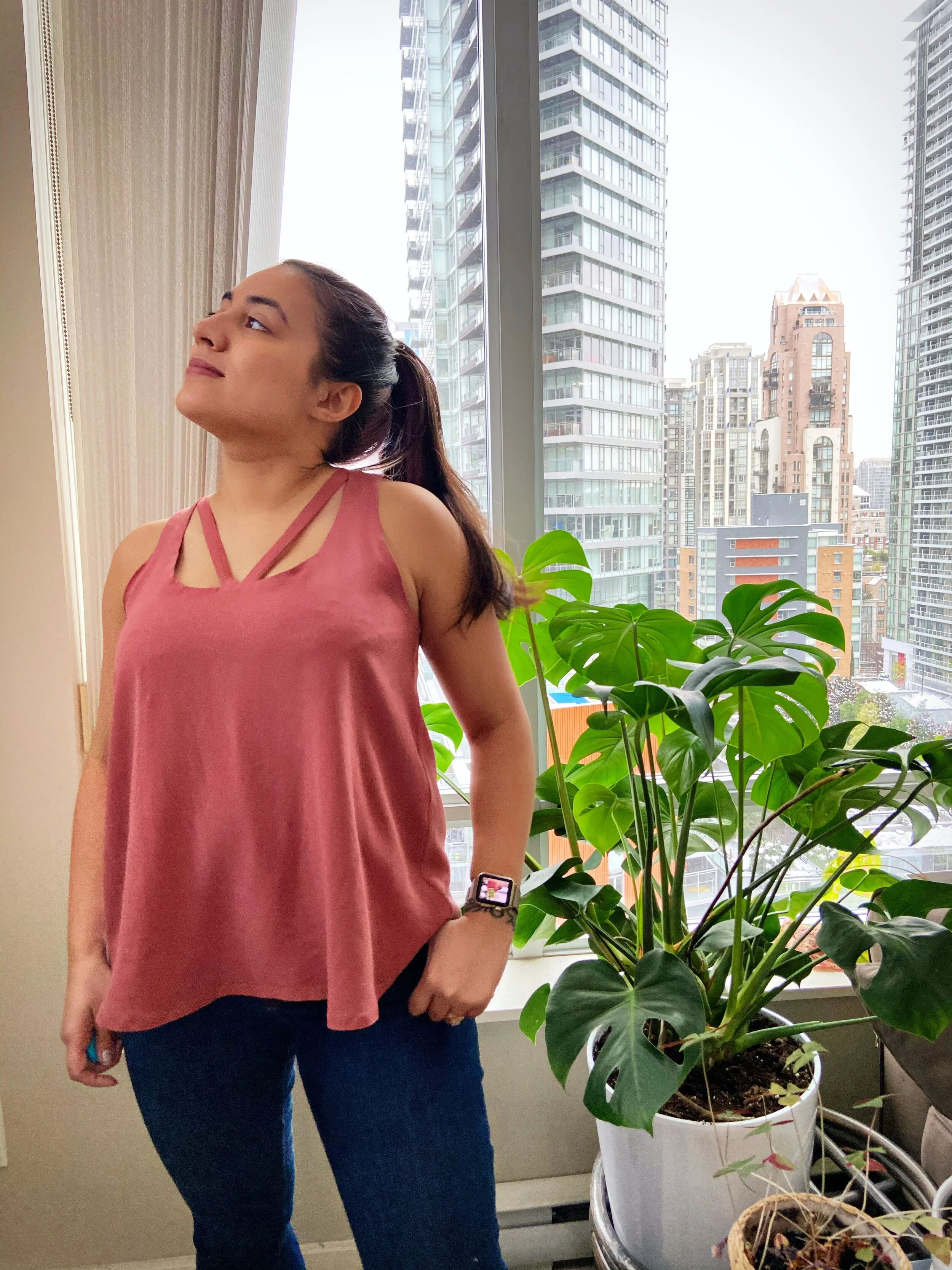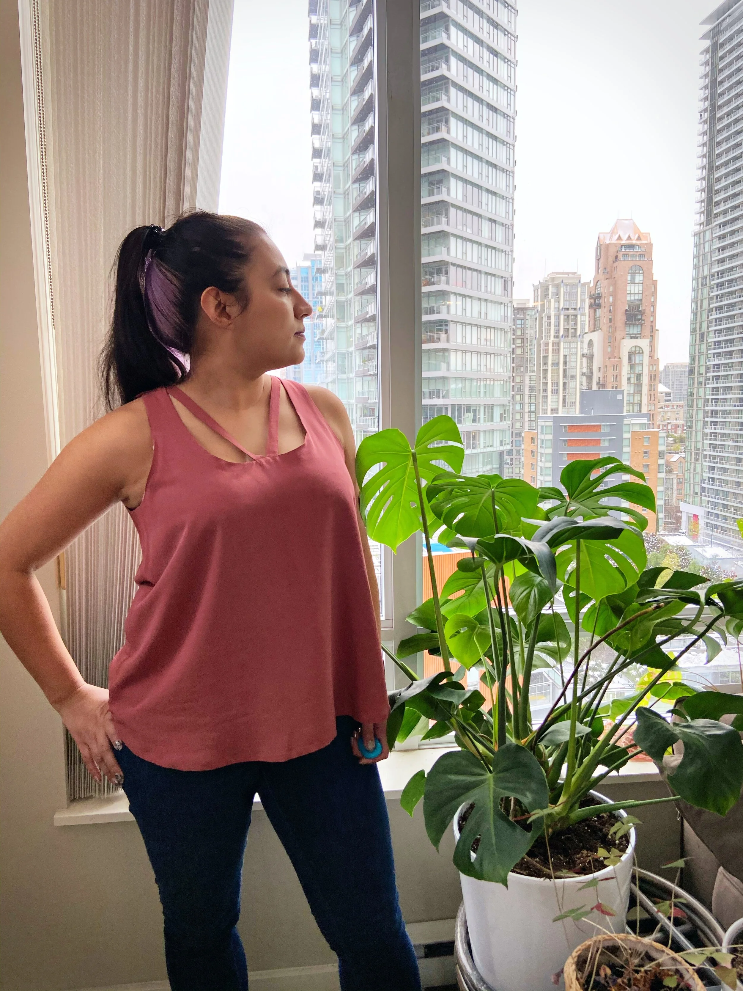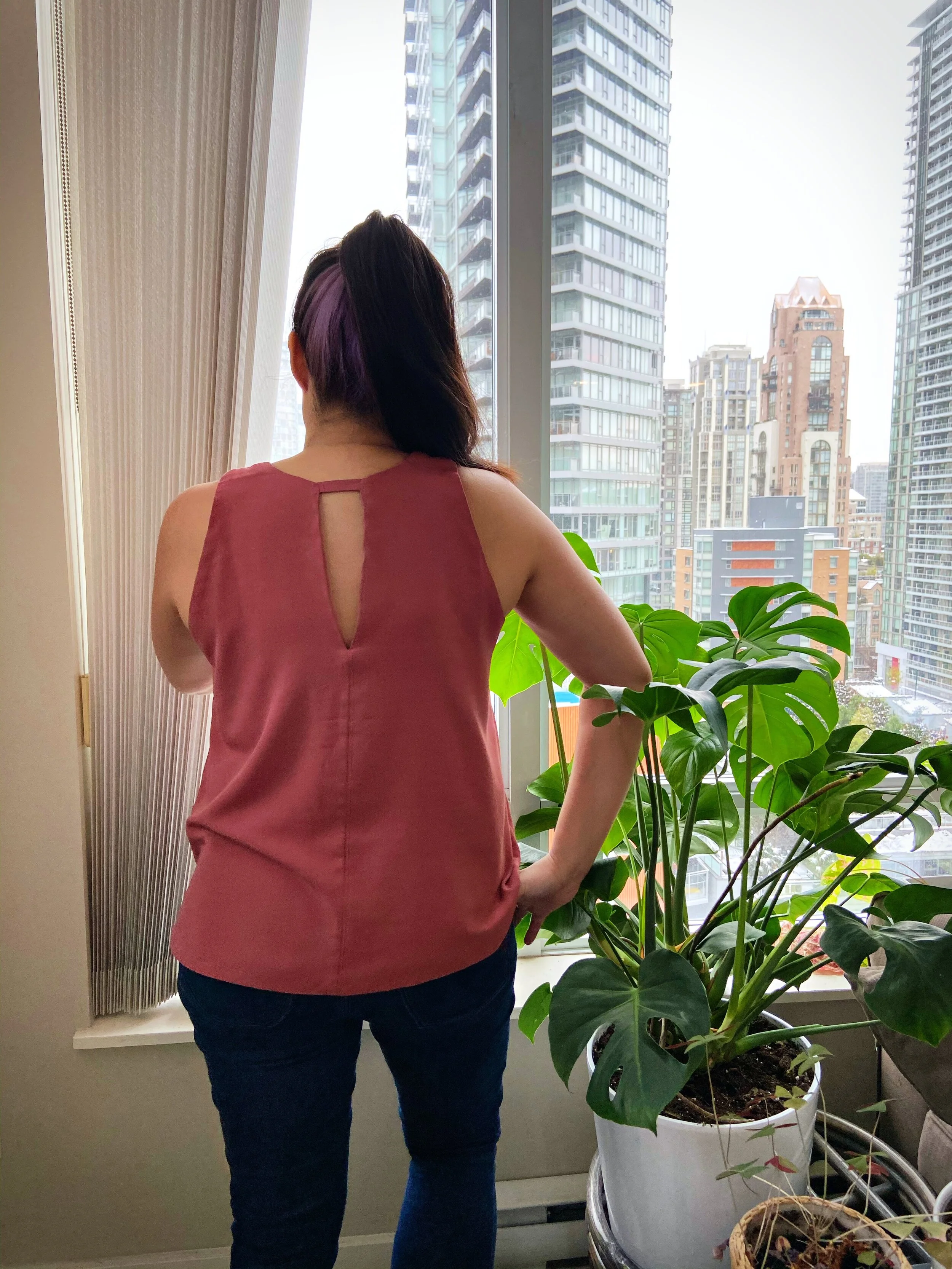 If you’ve been following the blog for a while you’ll know that I have a love for a nice tank top, I find styling them in layers very easy which is essential for the sometimes variable weather here on the west coast (not to mention the very variable temperatures at my work place!) When chalk and notch released this pattern last year I knew that I would be making at least one of the V strap versions, with the hope that this pattern would fit great and turn into a repeat make in my wardrobe.