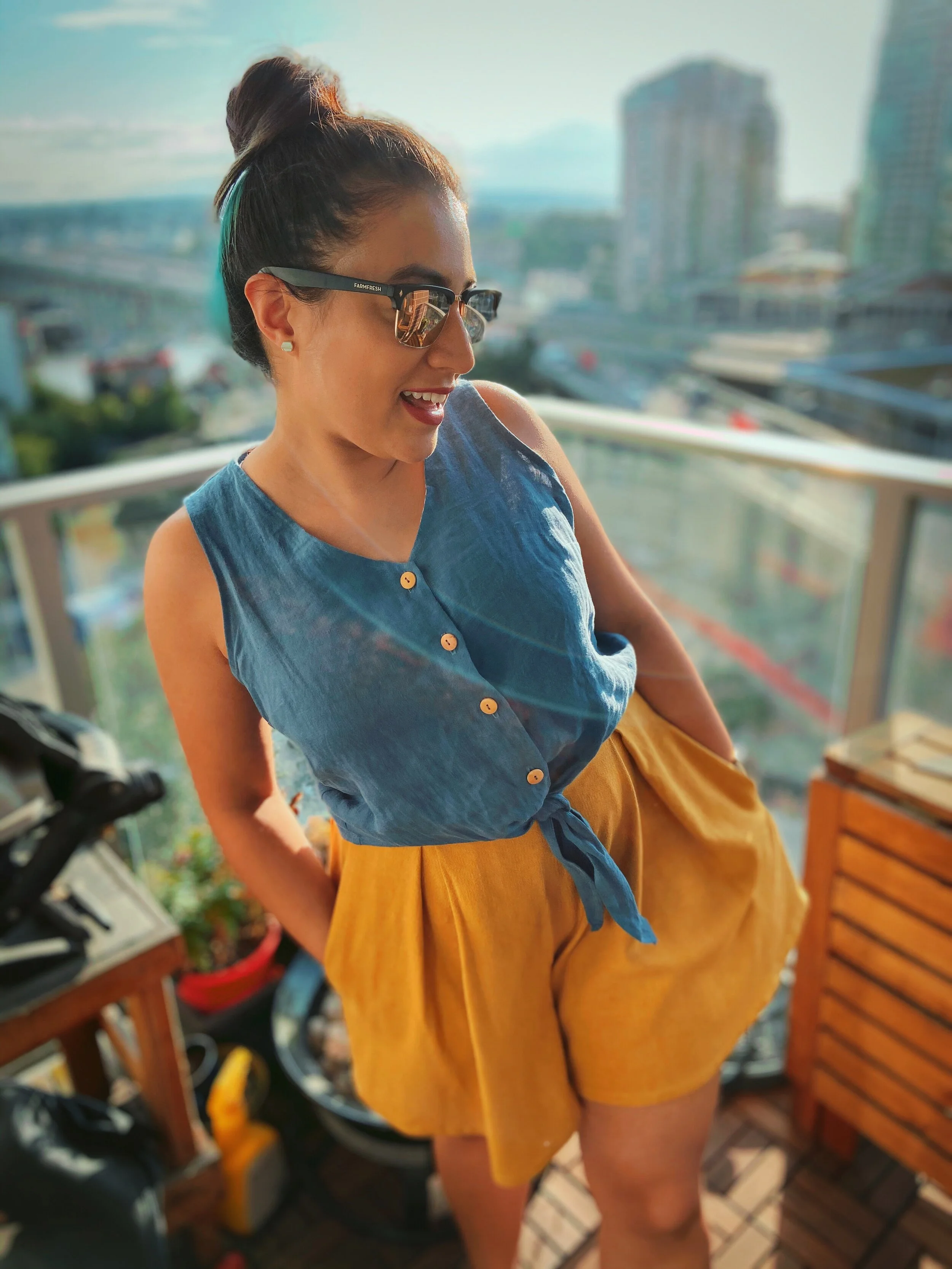 In keeping with the sunny weather we’ve been having I have a two more summer makes to share with you! My linen Hanna Tank by Pattern Scout and another pair of Winslow Culottes by Helen’s Closet. The Winslows are one of my tried and true patterns, this is the second or third pair of shorts I’ve made from this pattern. For this iteration I used a bright yellow viscose linen noil from Blackbird fabrics. As with my previous pink pair, I opted for the elastic backed waistband, I meant to try out the slanted pocket hack with this pair but forgot when I cut the fabric (which I actually did way back in March as I had intended to finish this pair in time for my trip to Bali but then never got to sewing it until now). All of the sizing and everything has remained the same since my last pair which you can check out in this post here. I used my brand new set of wide rolled hem feet to quickly hem up this pair of culottes which meant that I was able to finish sewing the whole pair in one short afternoon! This is why I love having patterns pre-cut for me to sew, when the motivation/need to sew strikes I can just have at it!