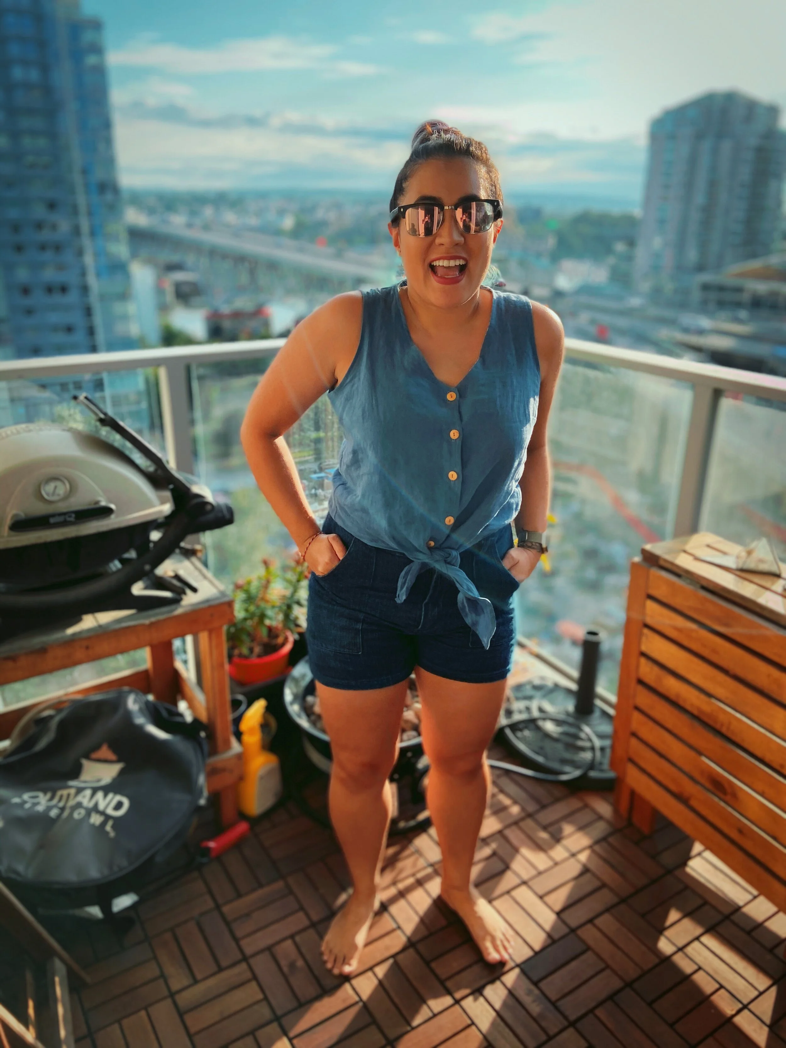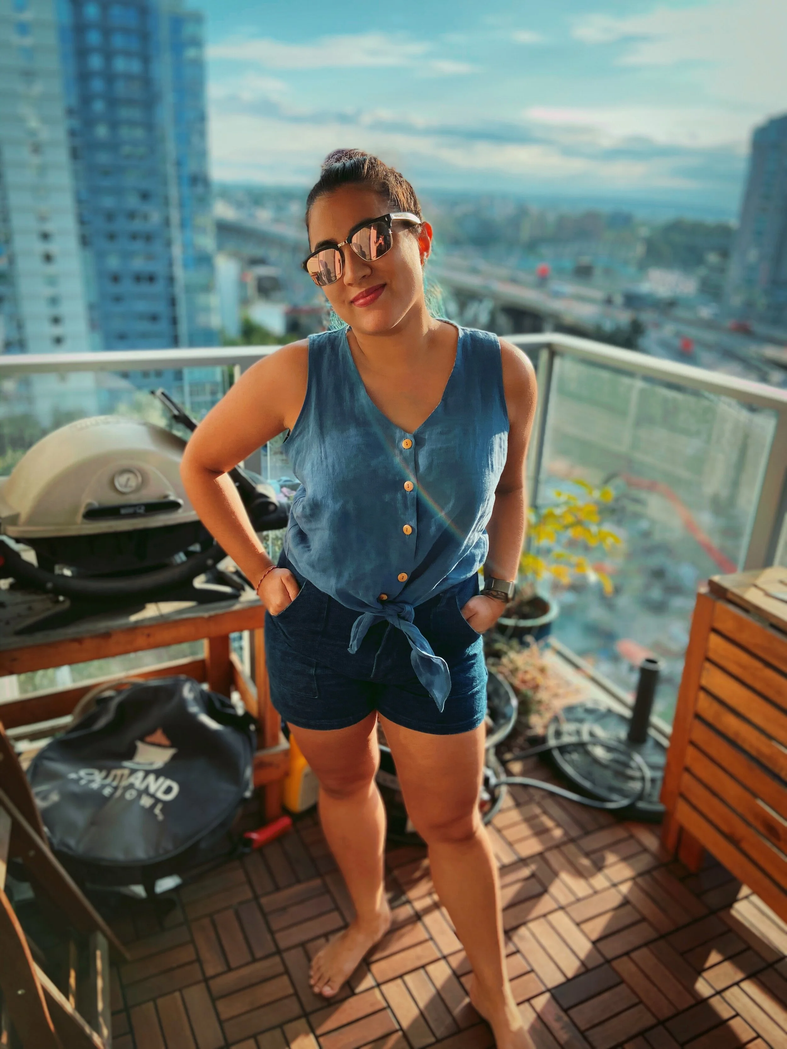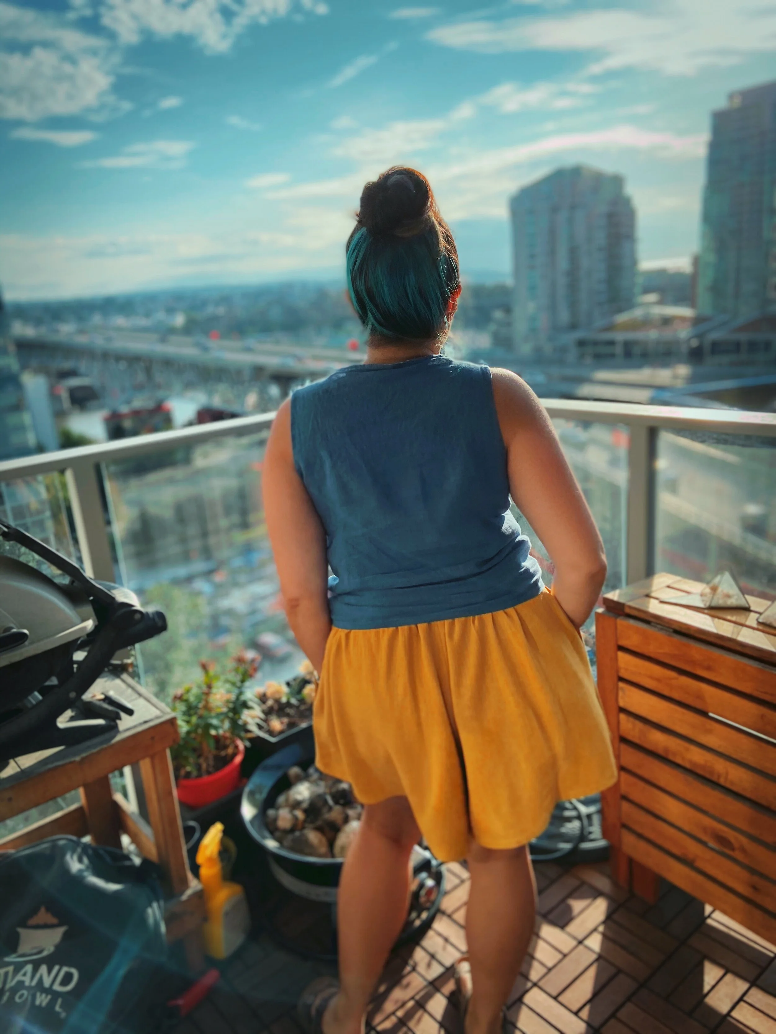 The look of this top really changes with what you pair it with, here’s what it looks like with my pair of Lander shorts that I made last summer. I had originally envisioned wearing this top a bunch with my Winslow culottes, and while I think that pairing looks good I think overall I like the look of the Hanna tank with slim fitting shorts a bit more than the more voluminous culottes. What do you guys think? And have you ever forgotten that you were making a wearable muslin and finished sewing the whole thing before trying it on? Let me know in the comments!