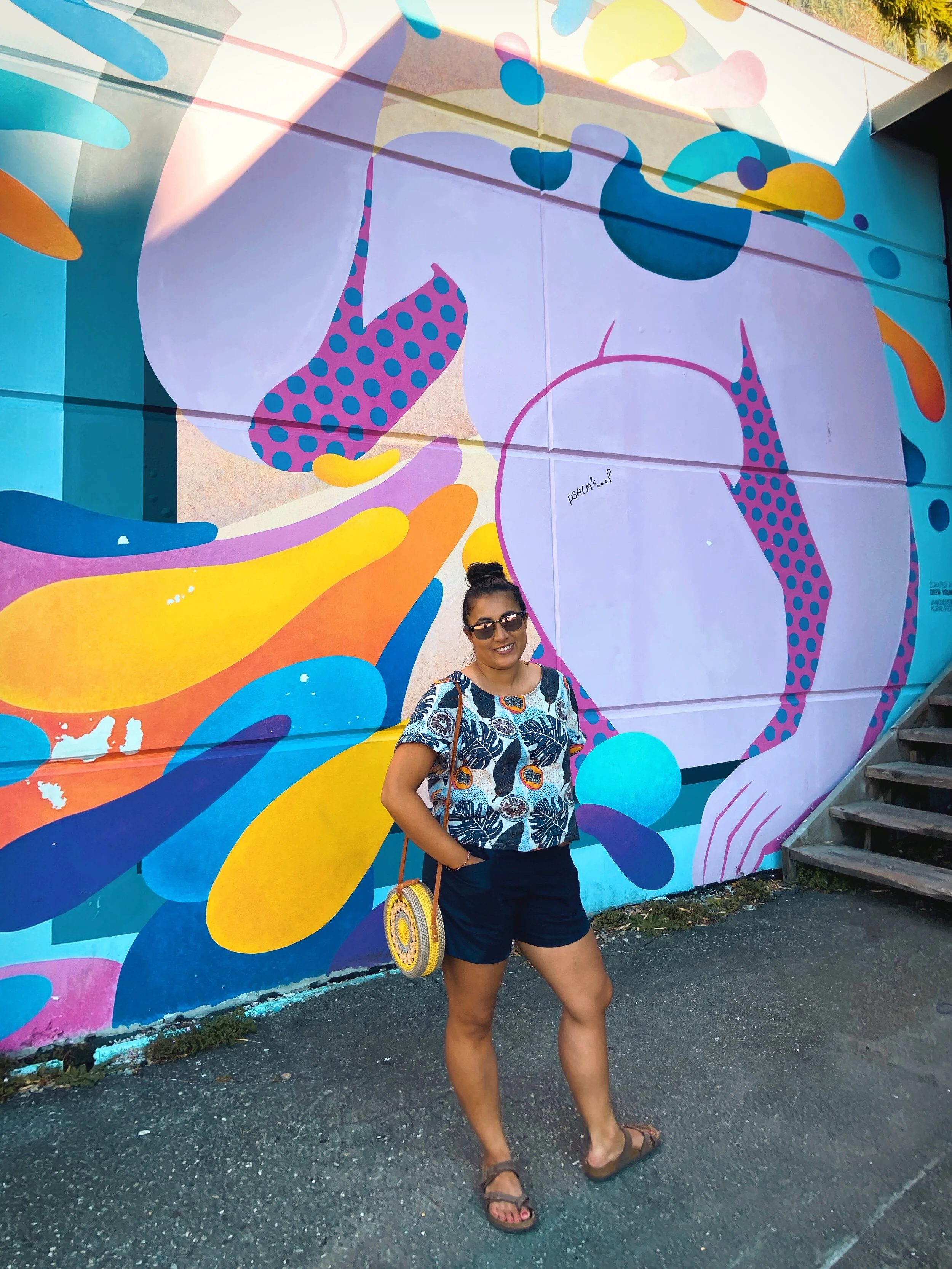 This mural is by Hanna Lee Joshi, called Echo Portal, installed in 2018