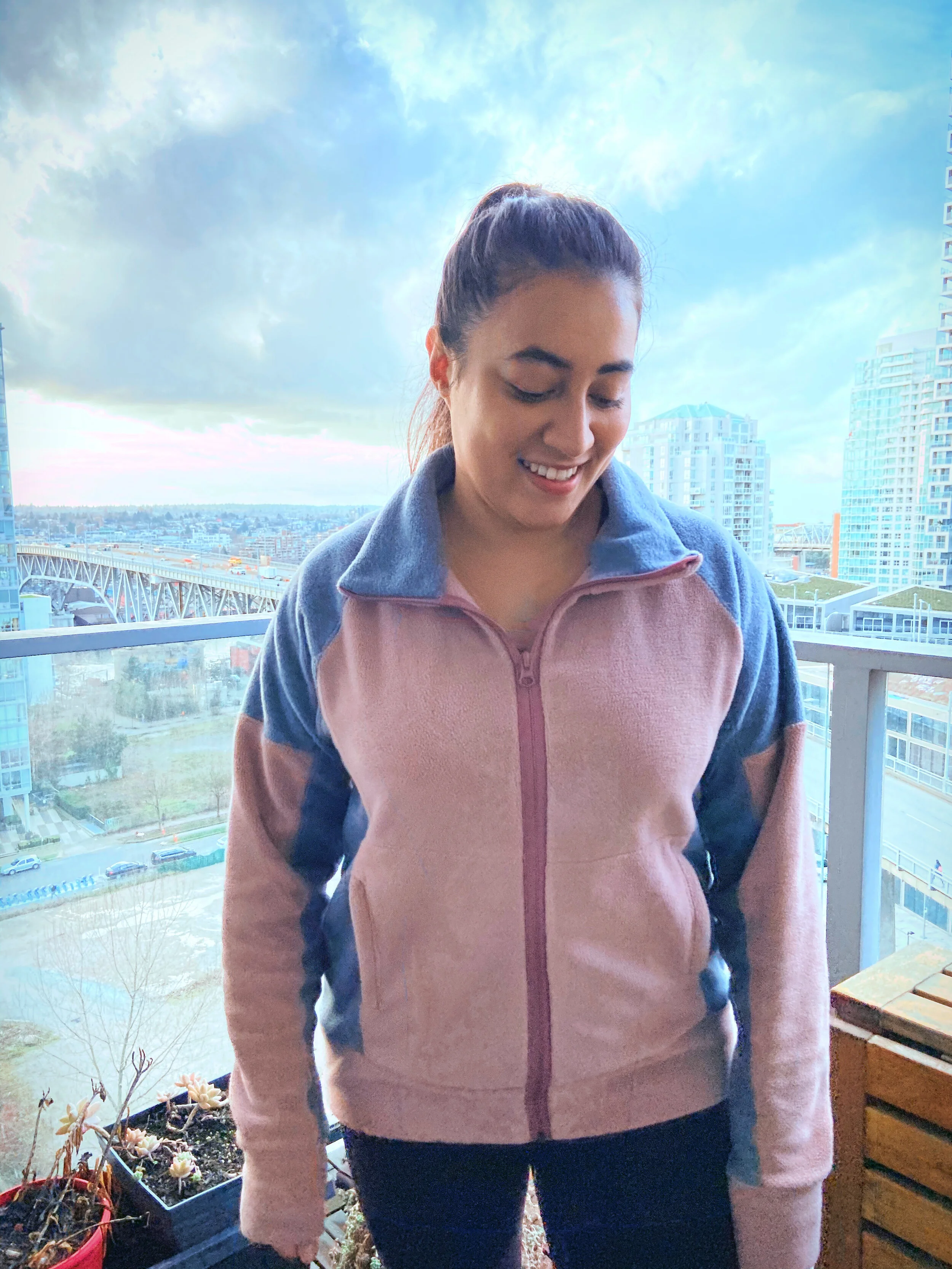 For the sleeves I think I could have gone a smidge shorter as they are just that bit too long, however I think I may go back and add ‘thumb-holes’ to the cuffs which would help with the long length. I really like how the final jacket turned out, I played a bit with the colour blocking, using the sketch of the jacket that comes with the pattern to decide on the final placement. I feel that the grey sides and underarms add a bit of visual interest and make it just that little bit different from a plain fleece. Since I wasn’t quite sure if the colour blocking would work out I had bought enough of the pink colourway to make the entire jacket and was then of course left with quite a bit of fleece which I was able to cut a Seamwork Oliver sweater out of, so I really got two fleeces for the price of one!