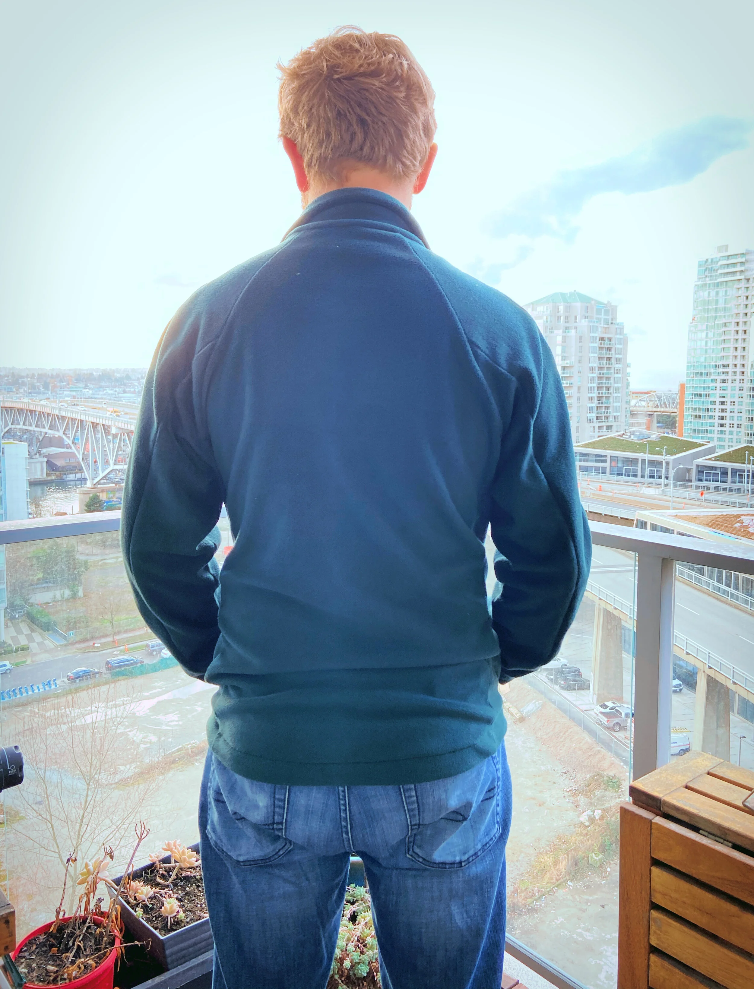 For the FluffyBlondeMonster’s jacket I chose the Fleece Jacket pattern by Wardrobe by Me and a dark green fleece fabric also from Blackbird. The FluffyBlondeMonster has a really old oversized/baggy fleece that he’s had since about high school that he wears literally everywhere and on everyone of our camping trips so I wanted to make him something that would be a complement to that fleece (and to give that fleece a chance to be washed more frequently!) I don’t know if that fleece was as baggy originally when he bought it as it is now but I thought for this new version we would go with something a bit slimmer. Comparing the final measurements of the pattern in size XL to his old fleece this new jacket is about 1” slimmer in the chest which gives it a more updated feel right off the bat.