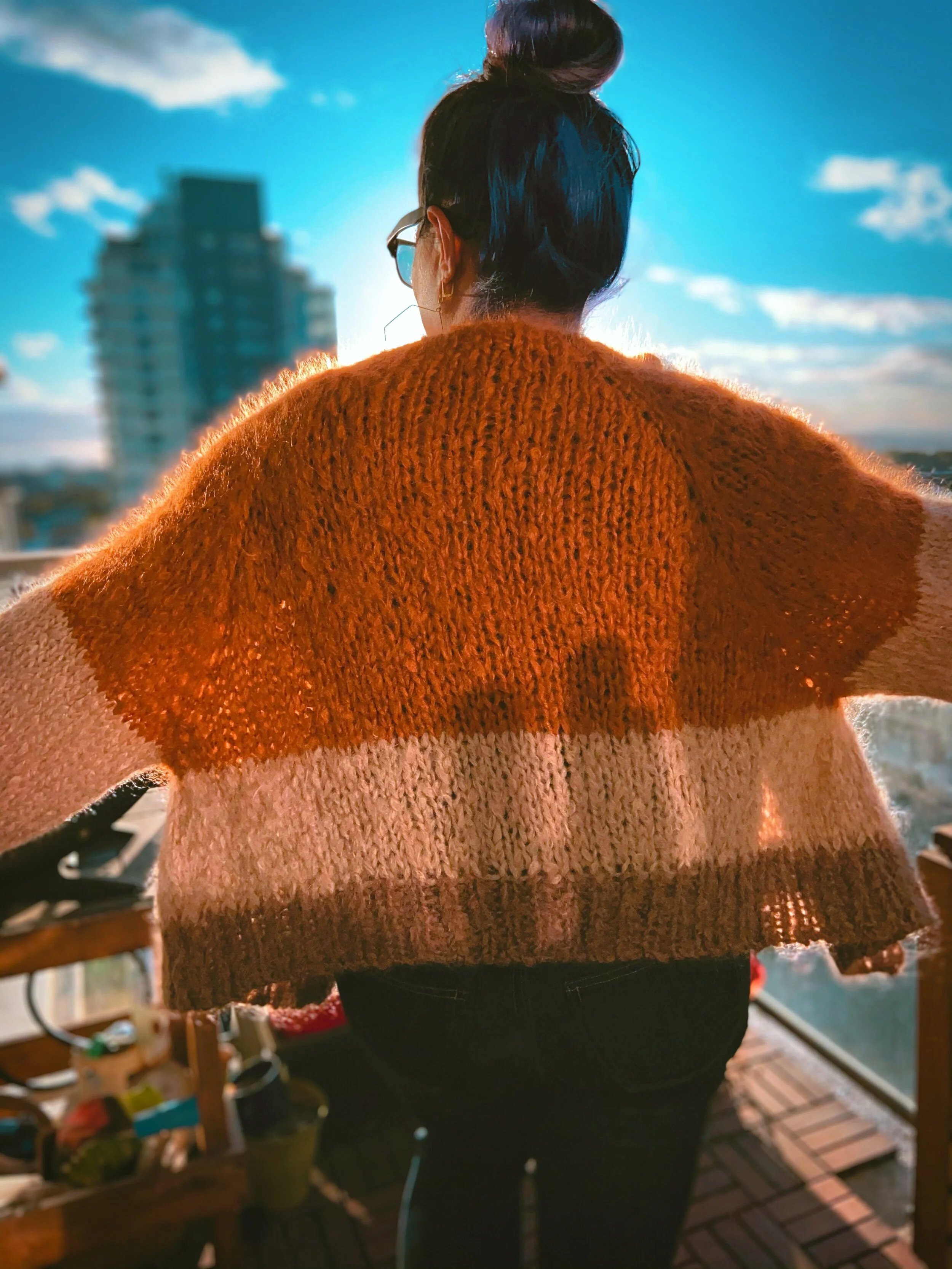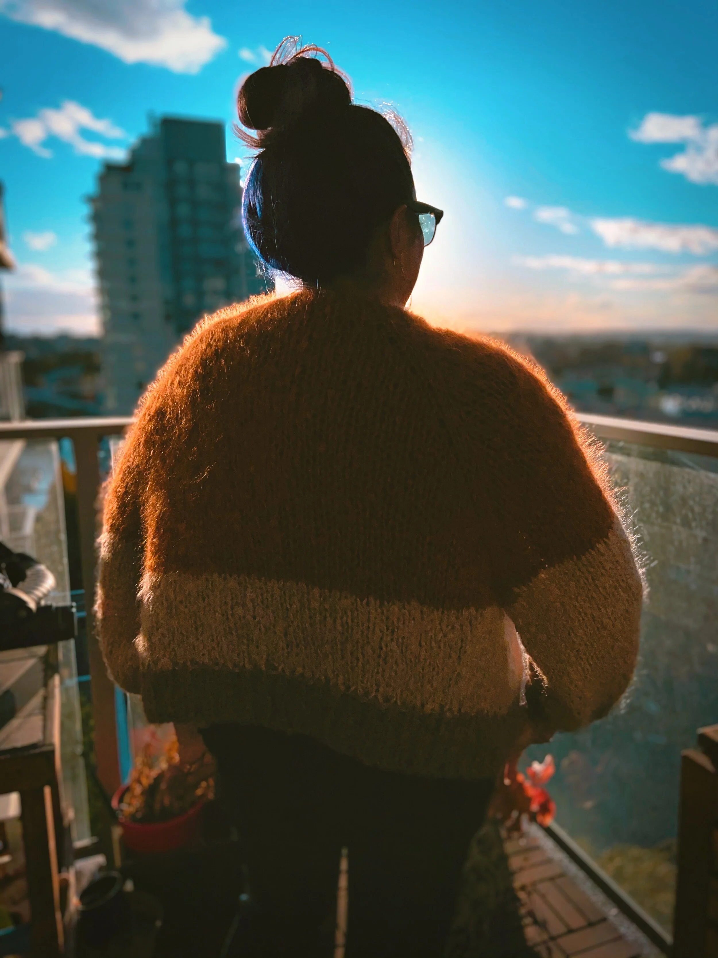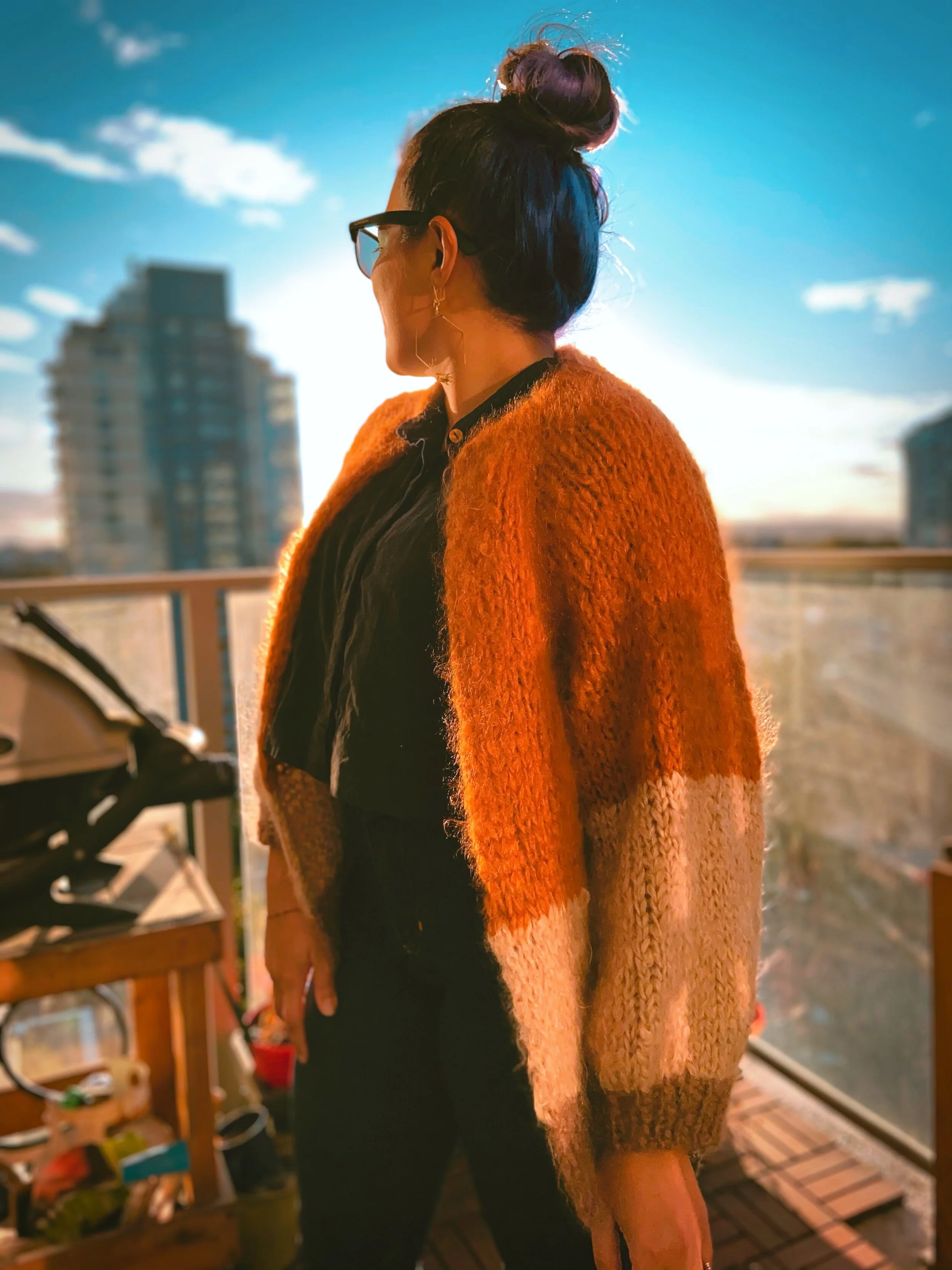 This sweater is honestly like wearing a warm cloud if such a thing was to exist! it’s so so so so soft, the mohair/merino mix is so light while being just warm enough to wear on a quick walk or around the house as the season change. It’s sometimes hard with bulky weight sweaters and cardigans, I love making them but sometimes they can end up being way too warm for Vancouver weather. Not so with this airy and light yarn, it’s really a great mix of getting to knit with bulky yarn without over heating later on when you’re wearing it!