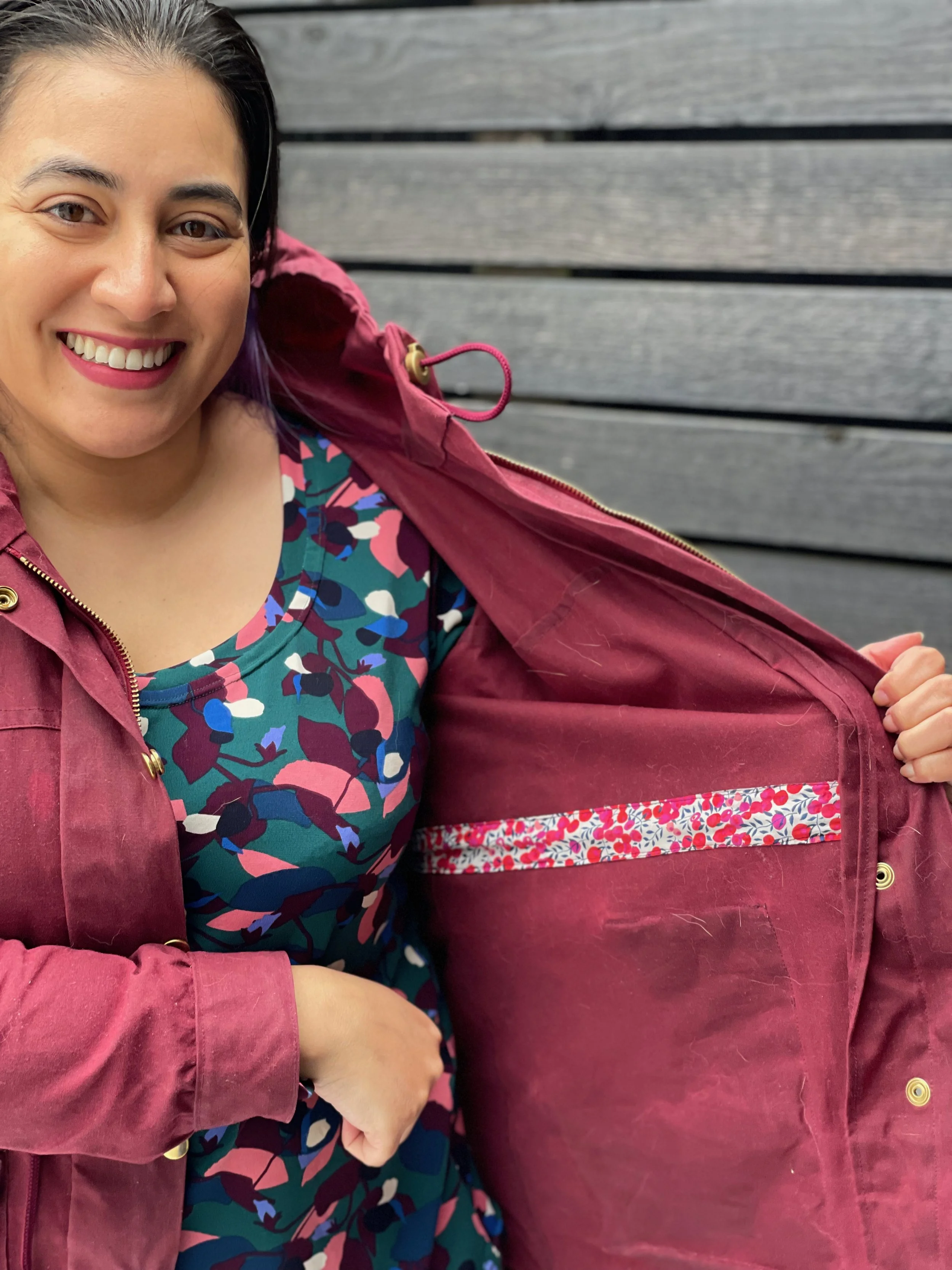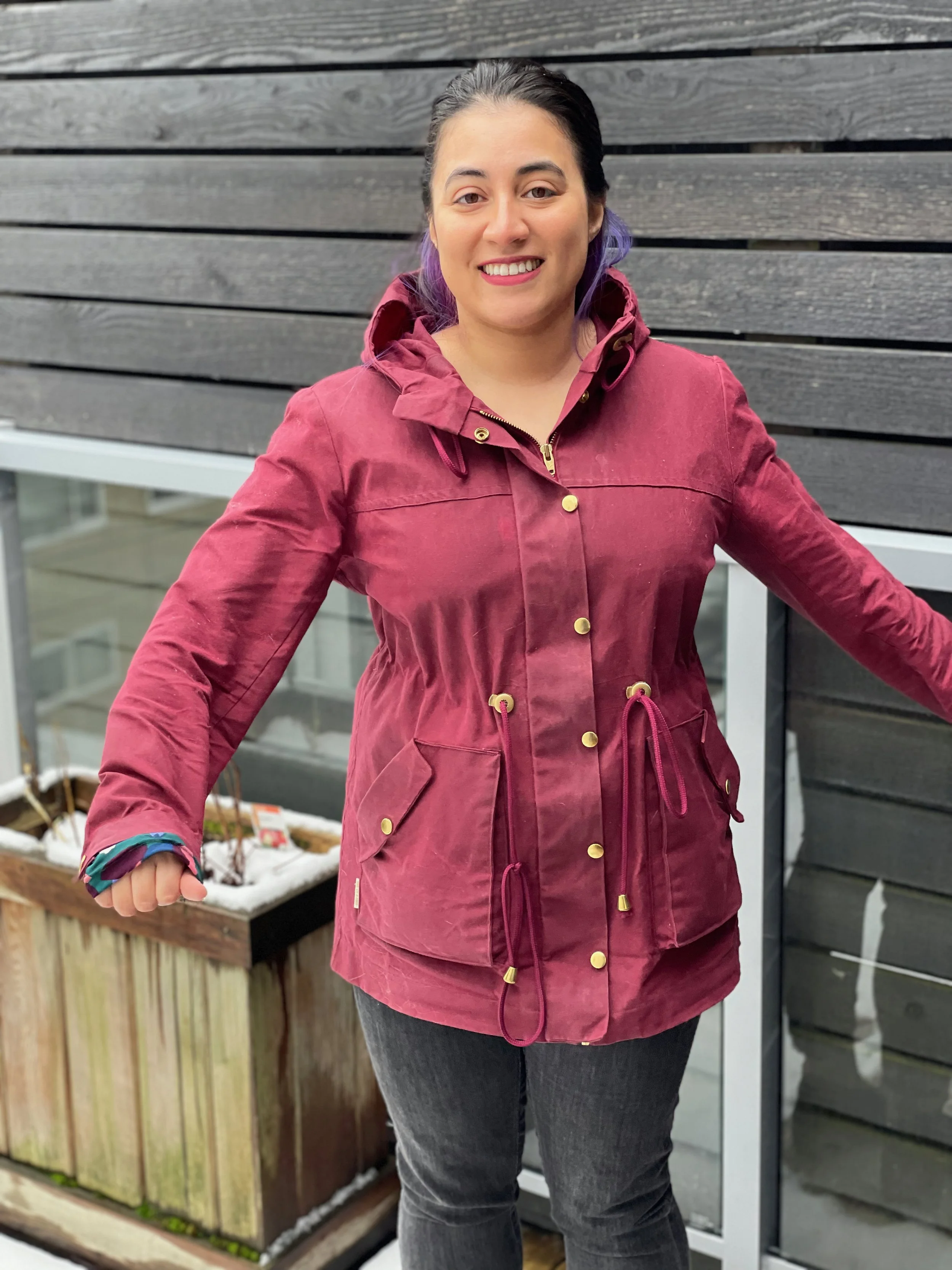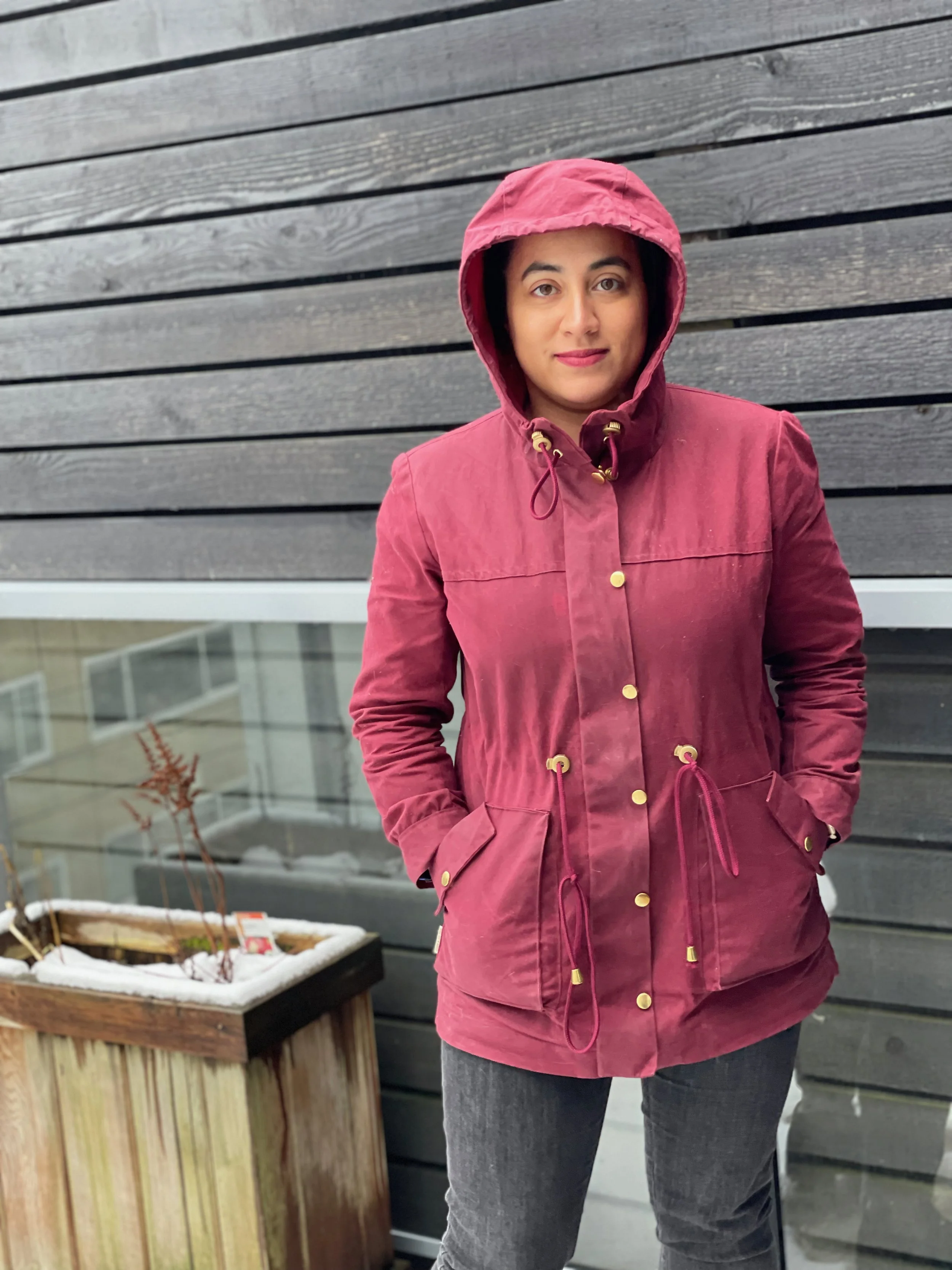 If you’re been following me for a while you’ll know that this isn’t the first Kelly Anorak Jacket from Closet Core Patterns that I’ve made (the post on my original, well loved, fully waterproofed gortex one can be found here, posted a full FOUR years ago almost to the day!) I still love and wear my OG version but was looking to upgrade it a bit. I wanted to make the fit a bit bigger so as to fit more layers, especially when I want to wear some thicker hand knits, as well as modify the pockets a bit to make the ‘faux’ snap pockets functional. I also wanted a more seasonal transitional version that still offered some water resistance but could also be worn on non-rainy chilly days, hence the waxed canvas this time around vs. going full waterproof.